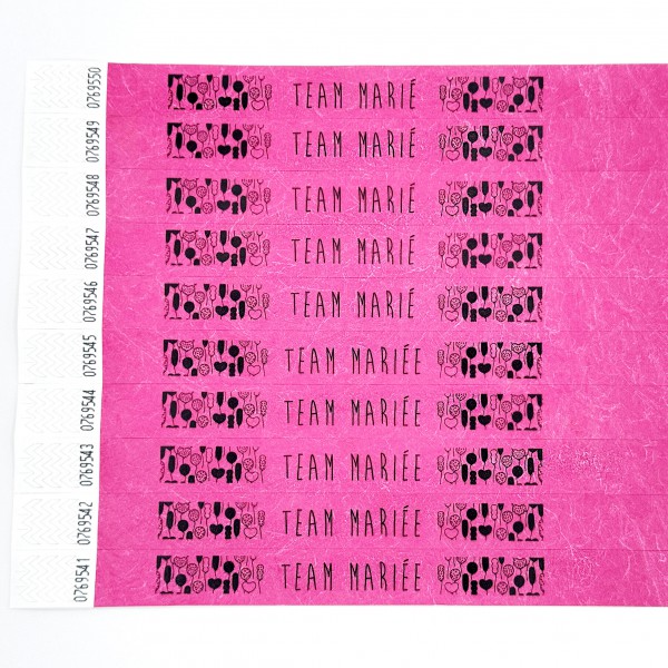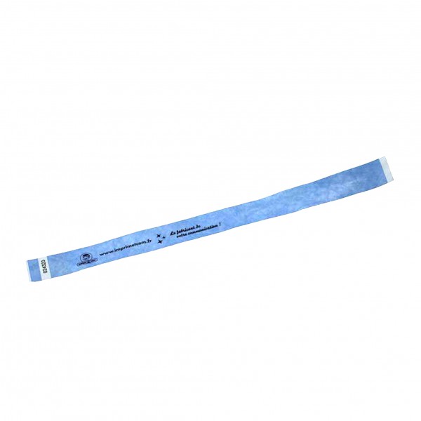 Bracelet Tyvek personnalisé en impression sérigraphie 1 couleur noire, idéal pour le contrôle d’accès et l’identification lors d’événements de courte durée. Indéchirable, inviolable et économique, il constitue le standard de l’événementiel pour une utilisation de 24 à 48 heures.