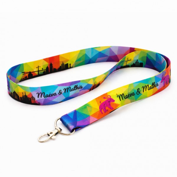 Le tour-de-cou personnalisé en impression sublimation est la solution idéale pour les visuels riches, créatifs et très colorés. L'impression est réalisée par sublimation thermique sur un lanyard blanc, garantissant un rendu précis, homogène et durable.